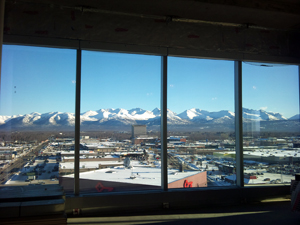 アンカレッジの山達が広大なスケールで迎えてくれました!凄い。