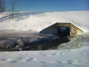 The entrance for the salmon to enter the lagoon from the ocean.