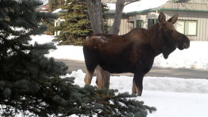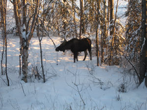 Opened the door and there he was. I feel lucky when I see a moose walking around. Don’t get too near….