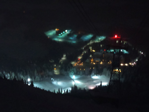 Watching the snowboarders getting of the lift on top of Alyeska Ski slope.