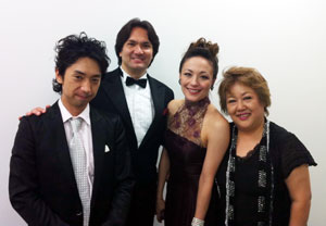 母校、セントメリーインターナショナルスクールでのコンサートにて。左手にピアニストの中島剛くん、ミュージカル界の歌姫シルビア・グラブ、そして「あなた」で日本のシンガーソングライターの頂点を極めた小坂明子さん。